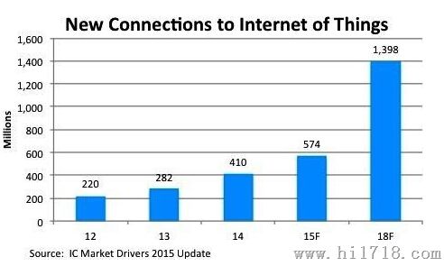 IC Insights估計,整體物聯(lián)網(wǎng)相關營收(不包括因特網(wǎng)服務器、網(wǎng)絡基礎架構與云端運算系統(tǒng))預期在2013至2018年可取得21.1%的復合年平均成長率(CAGR),在預測期間最終達到1,041億美元的規(guī)模。此外該機構還估計,未來物聯(lián)網(wǎng)中與網(wǎng)際網(wǎng)絡鏈接的“物”之數(shù)量成長速度,將大幅超越全球連網(wǎng)的人類用戶。