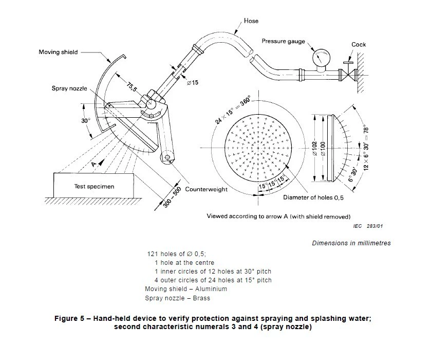 檢驗第二位特征數(shù)字為3和4,防淋水和濺水手持式試驗裝置(噴頭)
